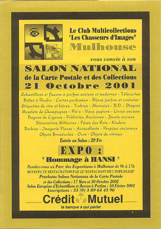 SALON NATIONAL DE LA CARTE POSTALE ET DES COLLECTIONS DU 21 OCTOBRE 2001 - MULHOUSE